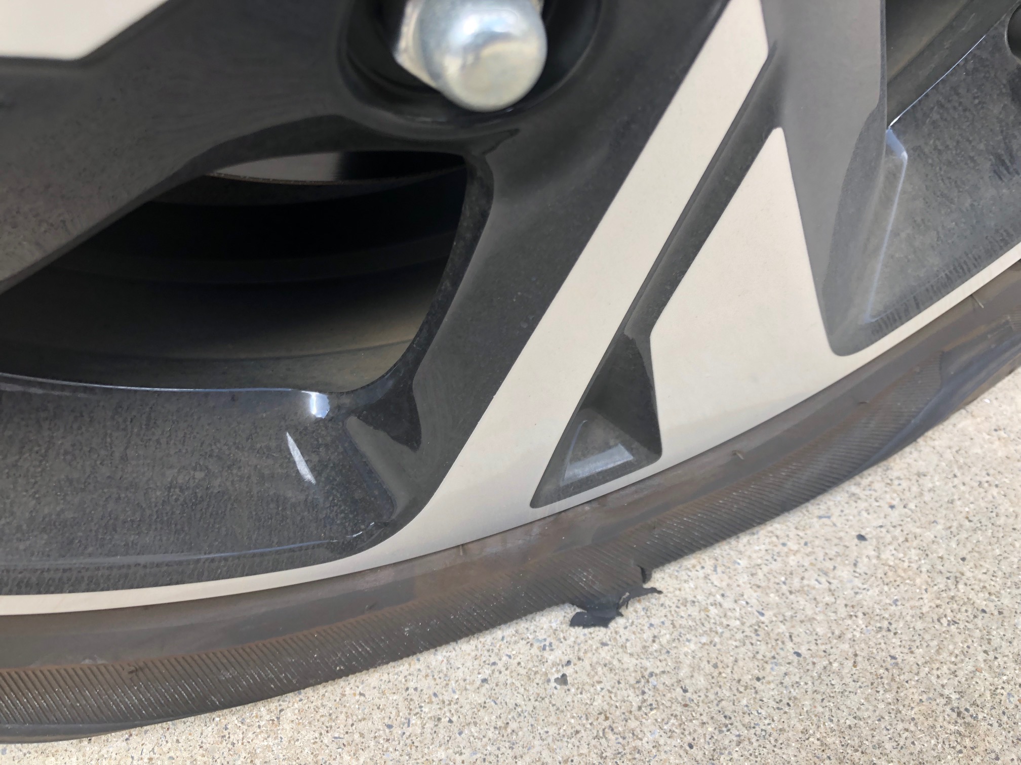 縁石と接触した為複数の線傷が入ってしまった