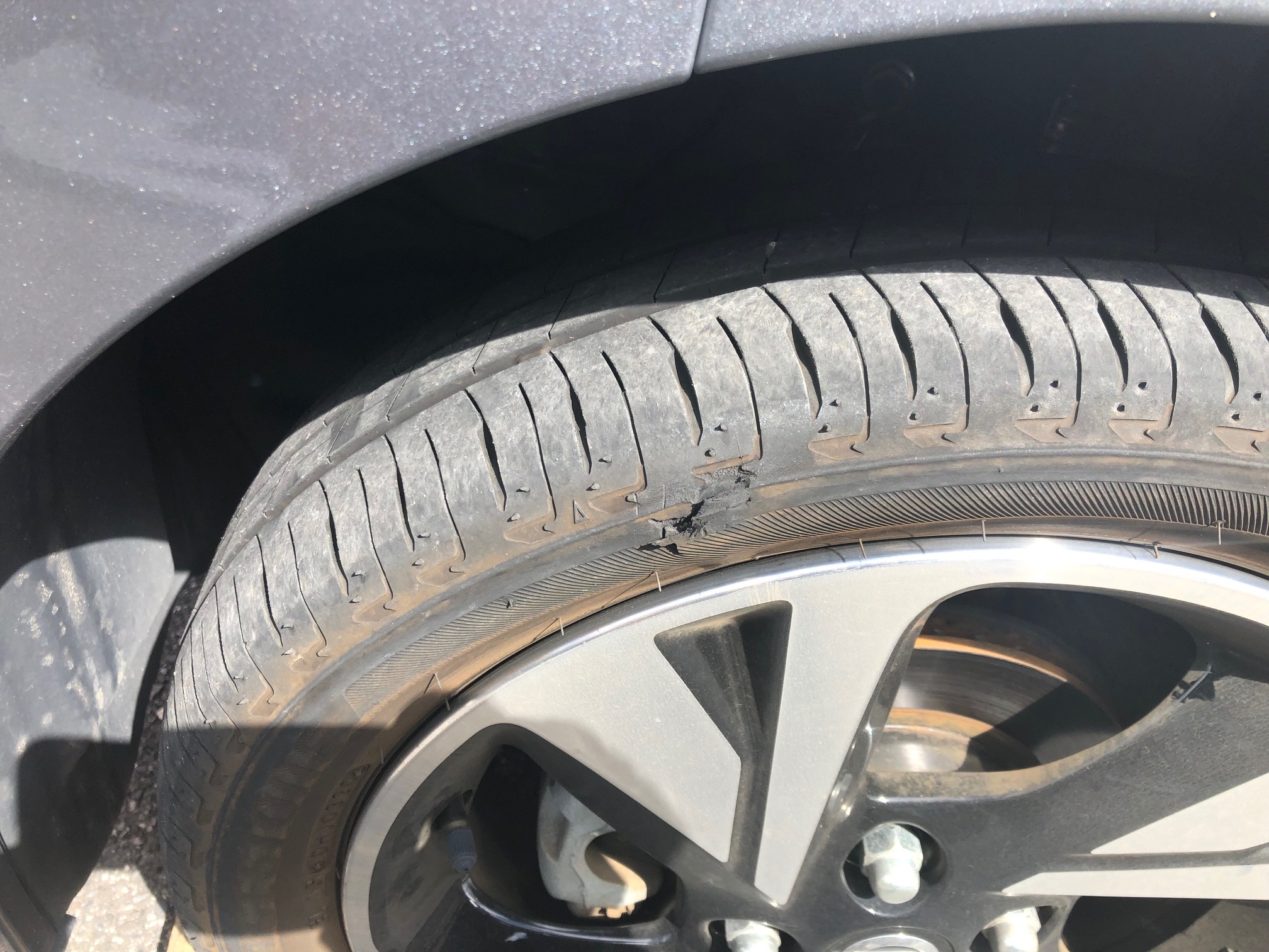 タイヤが3㎝程裂けてしまっている。