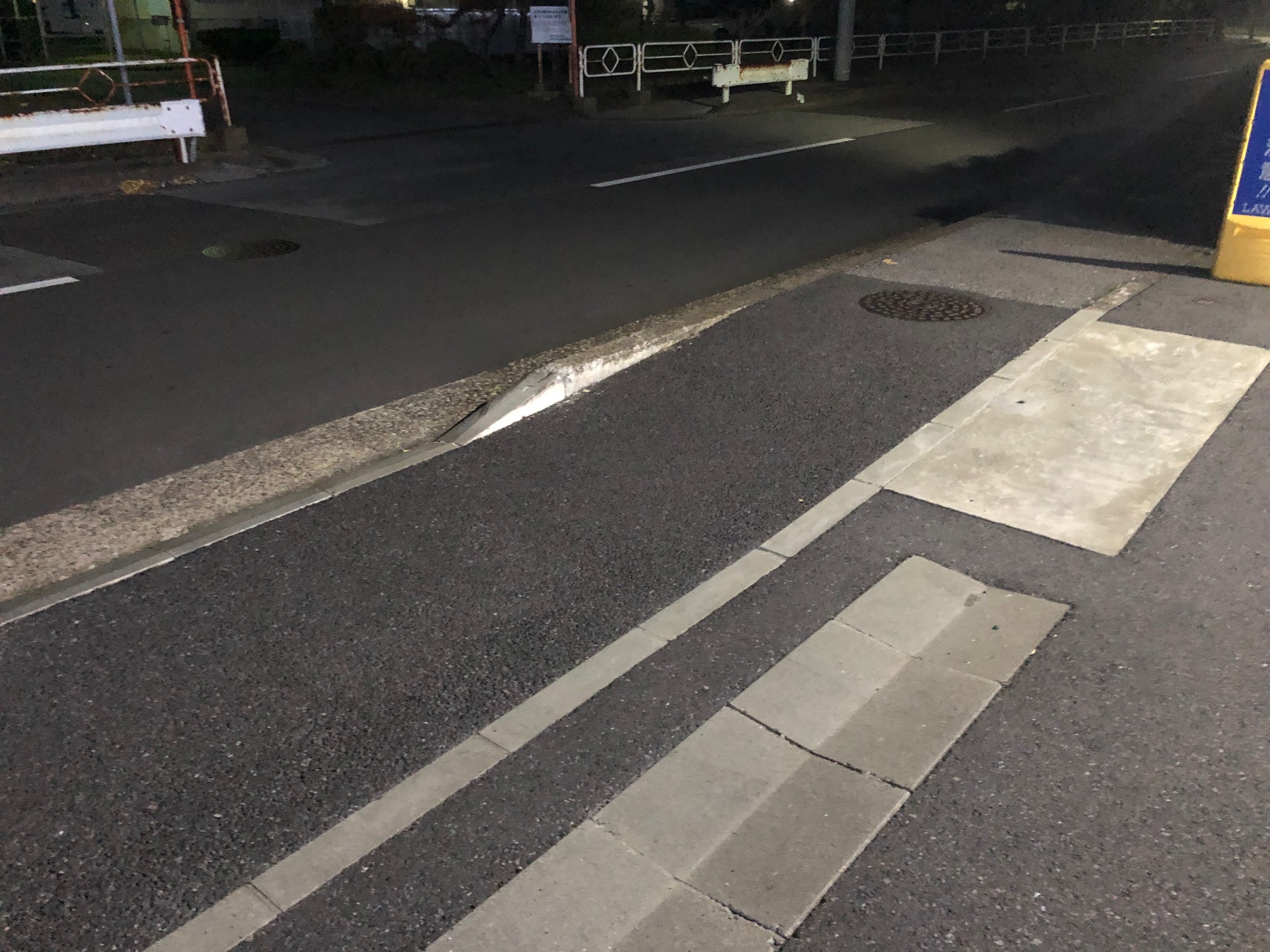 画像より暗く陰になっていたのと、奥側のアスファルトは低い事