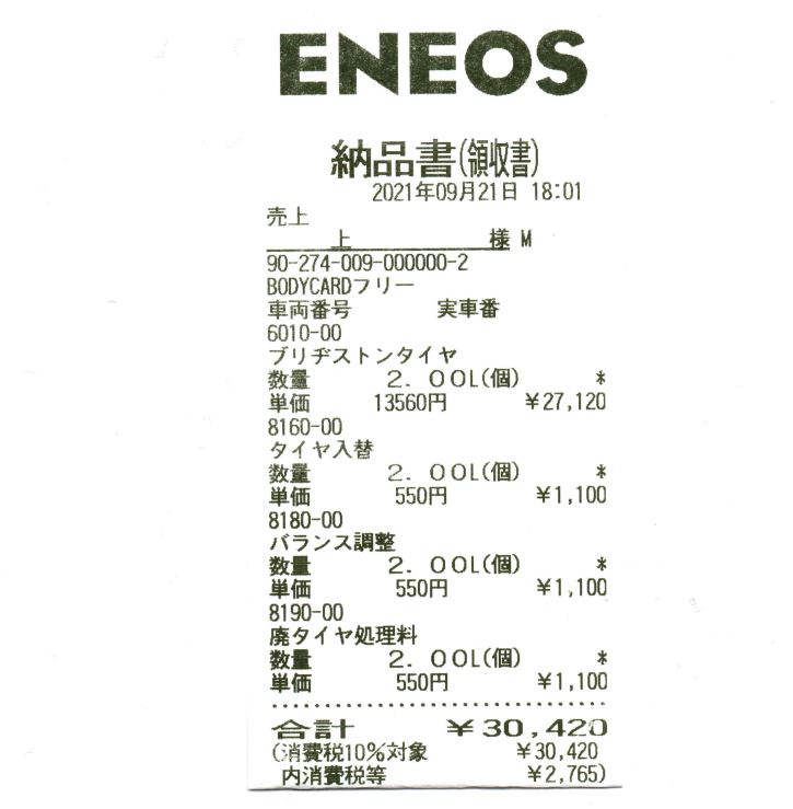 走行距離が1万キロ近かった為、前輪は2本とも交換を行った。
