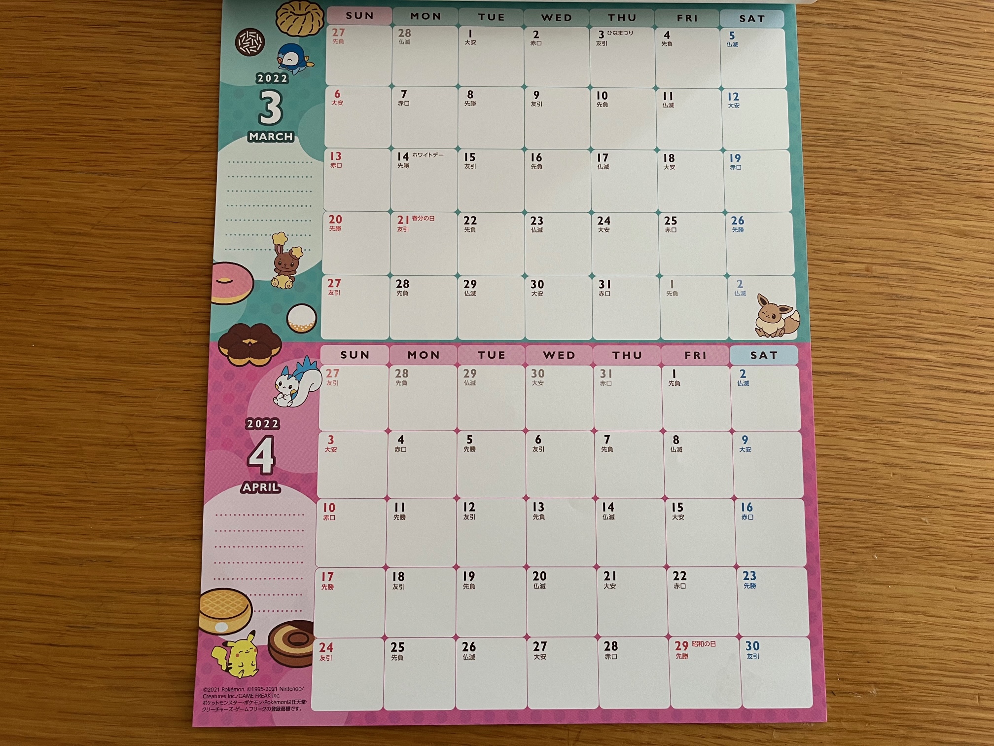 ポケモン2体が各月に配置という感じです。