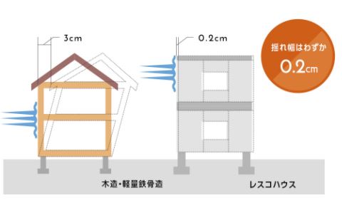 - 強固な地盤と重みから家が揺れない